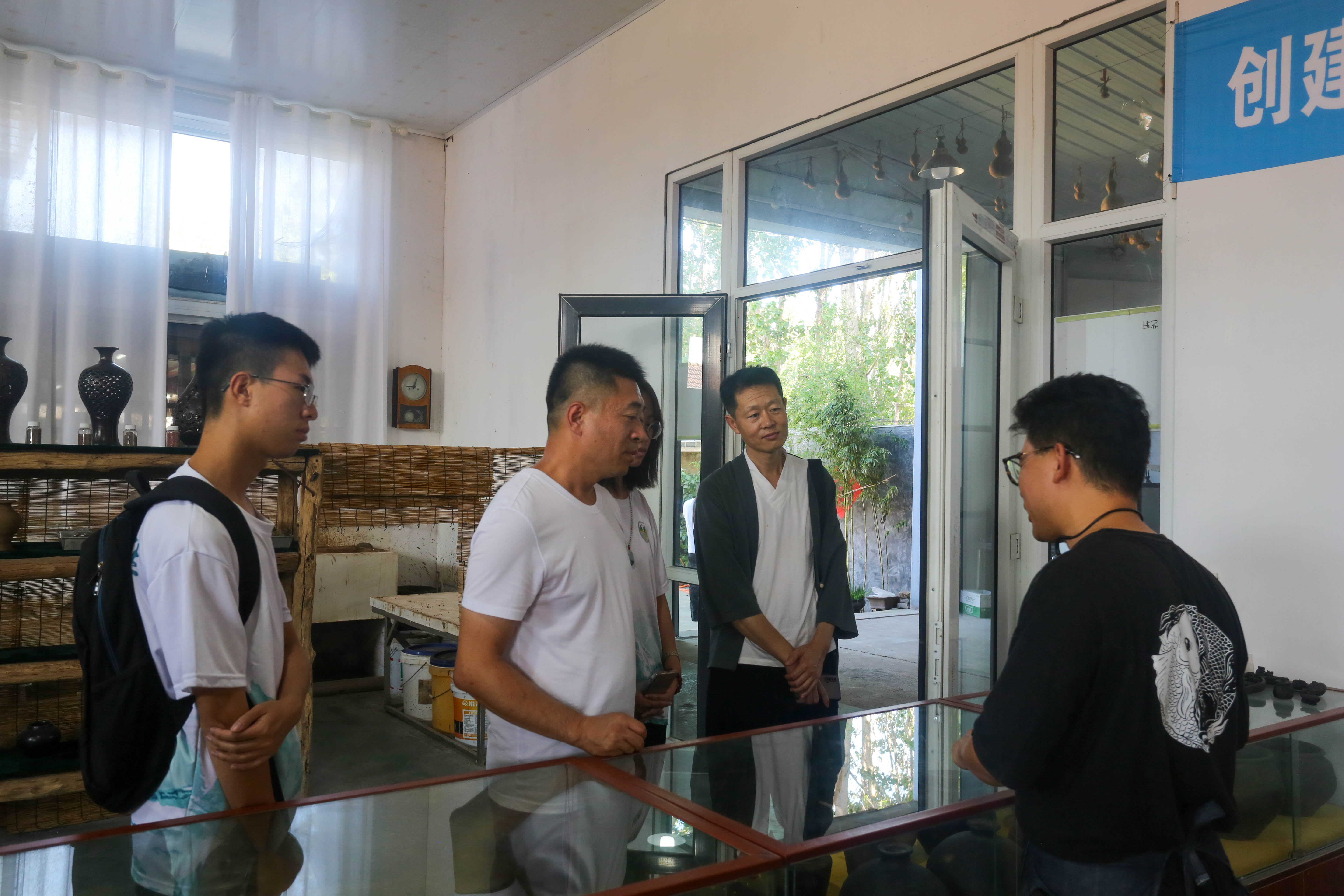 8月7日下午,实践队继续动身前往诸城陶艺坊调研诸城黑陶的制作工艺。陶器的制作保留着古朴、典雅的风格。诸城黑陶的特点是色泽黑亮,形态各异,线条流畅,浑厚稳重,富有强烈的视觉冲击力。经采访非遗传承人梁云涛先生得知,制作黑陶的陶泥多取自诸城市本地,原料上具有其独一无二的当地特色。尽管传统手工艺在现代社会面临许多挑战,但传承人梁云涛先生结合现代审美与科技手段进行创新,积极融入现代发展环境,通过与学校合作的方式开办了假期黑陶技艺体验课。契合劳动教育进校园的新教育模式,让诸城黑陶焕发出了新的生机与活力。