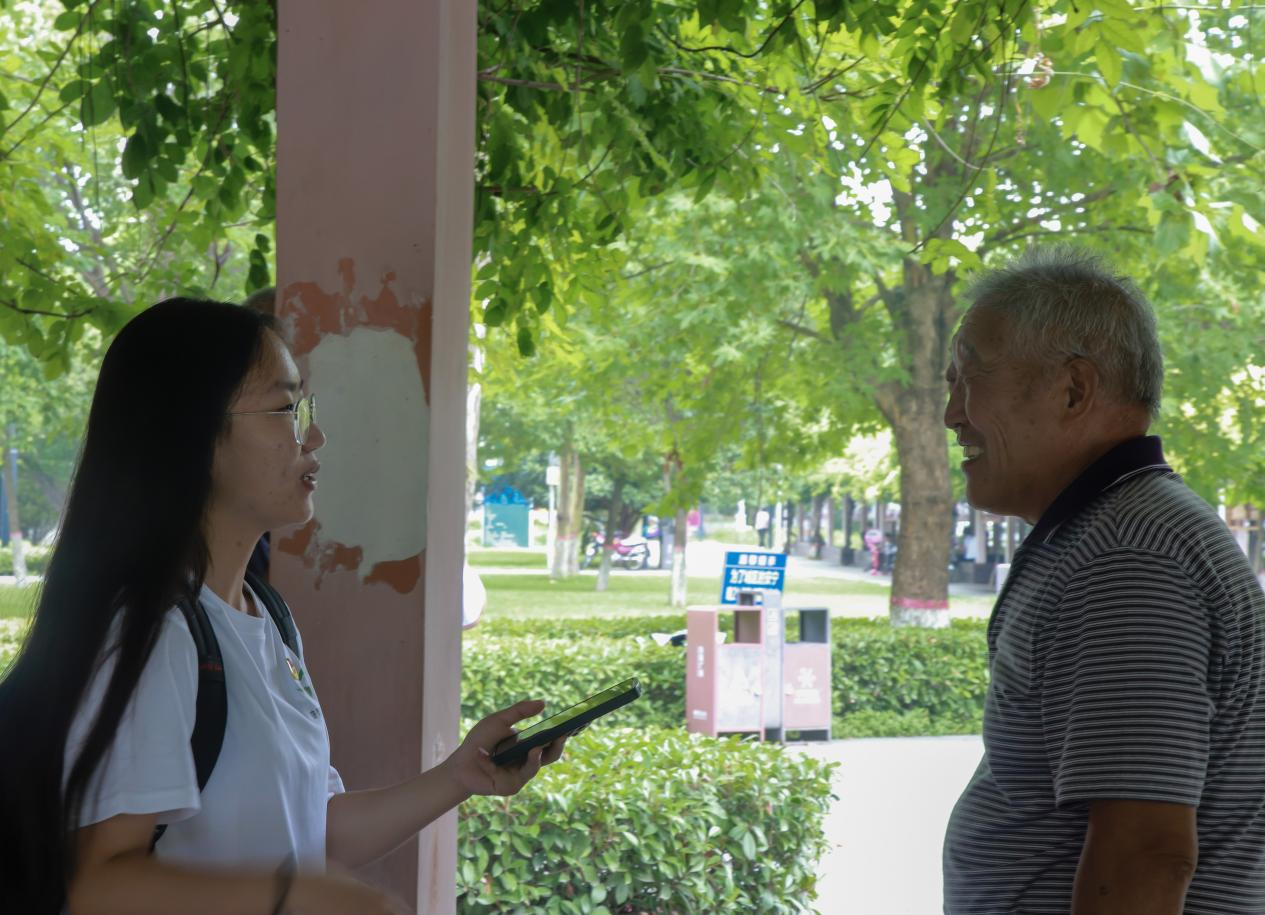 刚走进张载广场,实践队就被一段悲壮高昂的秦腔曲段所吸引,当地秦腔爱好者正聚集在一起《王宝钏》。一曲终了,就秦腔传承和普通话推广问题,实践团成员们紧扣”推普振兴”主题,与当地秦腔爱好者进行深入交流,了解到当地语言特色。并通过采访形式对当地情况进行调查,其中包括”是否满意普通话环境”、”什么场合会使用普通话”、”普通话推广是否会造成秦腔等地方特色语言文化缺失”等问题。