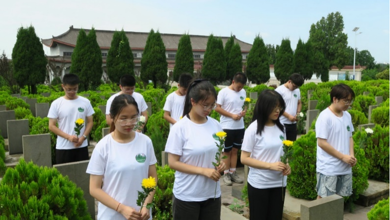实践队队员在烈士陵园的纪念碑前低头默哀马尉博摄