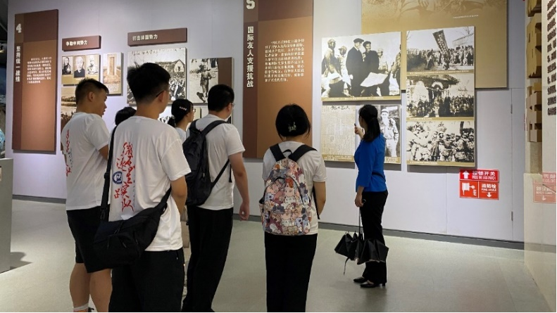 实践队队员在山东抗日根据地历史展馆聆听讲解李佳慧摄