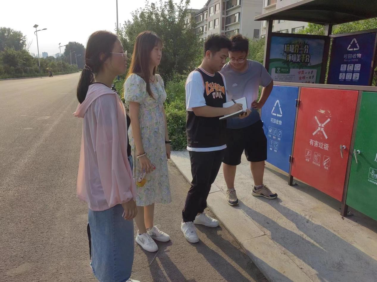 实践队在吴家庙新村和颜家洼村与当地居民就卫生环境和垃圾分类的问题进行详细的交谈并作相关记录,从他们回答的情况分析得出,大多数人对当地小区卫生环境表示很满意,一部分对垃圾分类问题提出了自己的见解和看法,小部分人则表示并不关心。实践队在泥沟子村和杨家庄村对垃圾箱的摆放位置和数量以及垃圾分类情况进行有关调查,调查结果发现垃圾分类并没有在社区内很好得普及,部分居民垃圾分类的意识淡薄。