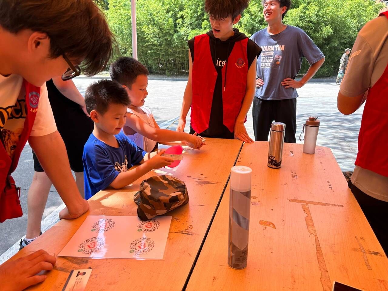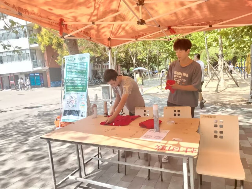 开展本次项目的同时,召旭服务队也同时进行了普及公益知识的“小课堂”,为同学们热情的讲解公益知识,呼吁大家积极的参与各类公益活动来帮助更多有需要的人们。在摊位上,服务队队员们迎来了许多想要了解更多公益知识和活动的同学们。最为特殊的是两名“小同学”。他们展示出了自己对公益活动的热情和爱心精神。认真、细心的听着召旭服务队队员们对公益知识的讲解。