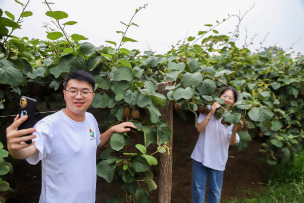 普韵眉坞实践队在猕猴桃种植园直播预售 陈田宇摄