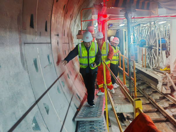 夏楠对周辉一行到来表示热烈欢迎,并介绍了中铁隧道集团近年来的发展成果,公司秉承“隧贯山河、道通天下”使命,坚持忠诚担当、守正创新,为国家和区域重大战略工程建设推进做出了积极贡献。周辉介绍了williamhill威廉希尔官网的基本情况以及学院员工培养情况,希望双方在员工就业创业、行业技术攻关以及资源共享等方面开展深入合作。李春宝介绍了学院土木工程专业的发展历程,在人才培养、团队建设、科研攻关、成果转化等方面的发展成就。随后,双方就在校员工培养与实习实践、毕业生就业创业等方面进行了探讨,希望通过合作开展志愿服务、创新创业活动,开拓就业实习岗位等方式进一步推进项目落地。随行员工对公司的就业招聘计划以及职业发展情况进行了咨询。会后,周辉一行参观了青岛地铁8号线闫家山车站TBM区间施工现场。