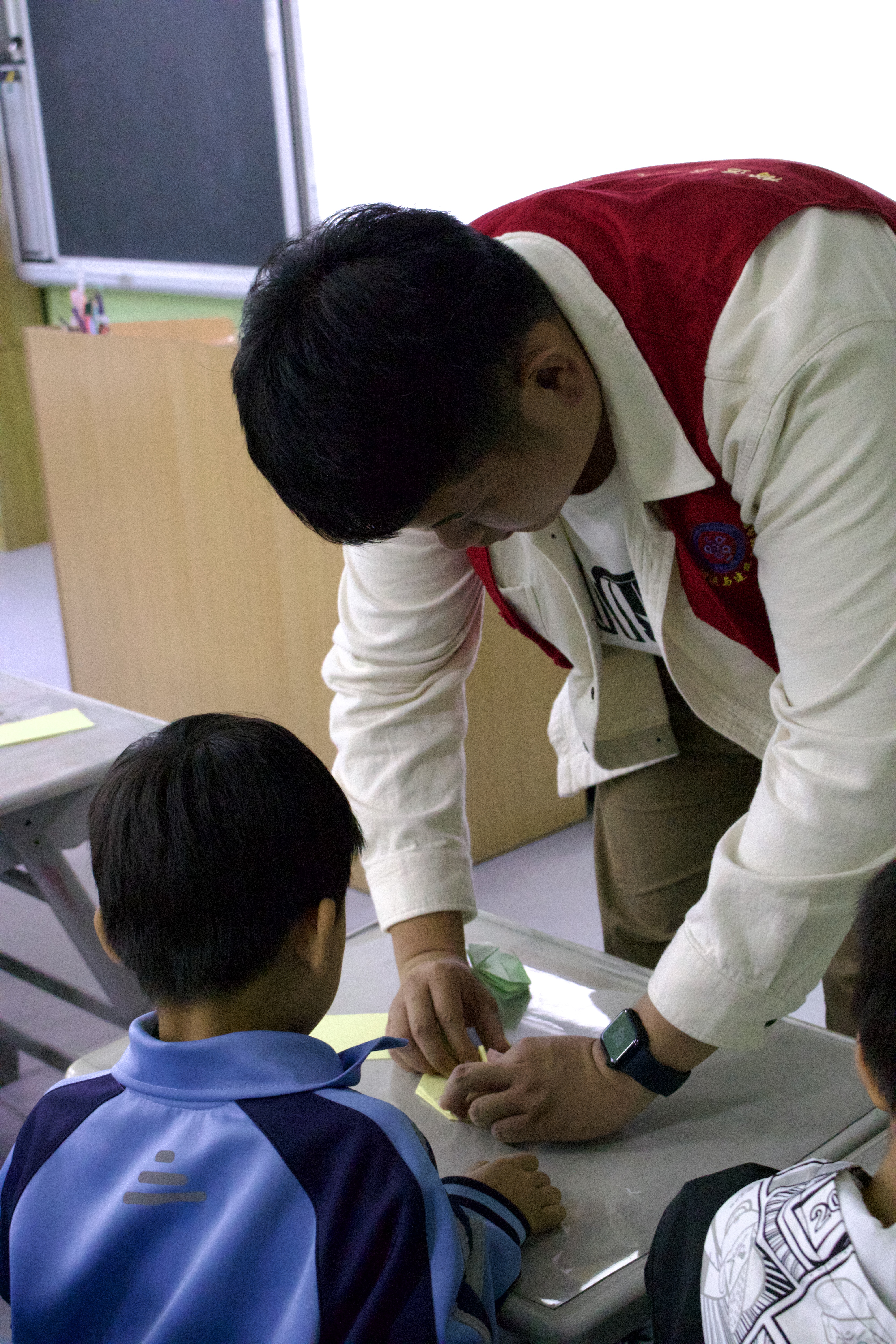 在手工折纸课上,志愿者们向一年级和二年级的小朋友介绍了有关折纸的知识,包括折纸的基本技巧、折纸的用途、中国传统文化的科普、折纸的分类,并用丰富多样的图片与实例向小朋友们展示了折纸文化的魅力,激发了孩子们的兴趣和想象力。