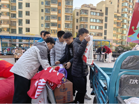 在隆基家源社区,储运2301团支部成员帮助正在开展的青岛市第三届社区运动会搬送物品、搭建场地、维持秩序、管理人员、记录成绩,并积极参与到项目中,与社区居民一起体会运动的乐趣。在长江西路社区开展以物易物市集活动中,储运2301团支部成员帮助活动主办方收集摆放二手物品、看守摊位,在儿童书籍和毛绒玩具中追忆美好的童年时光。