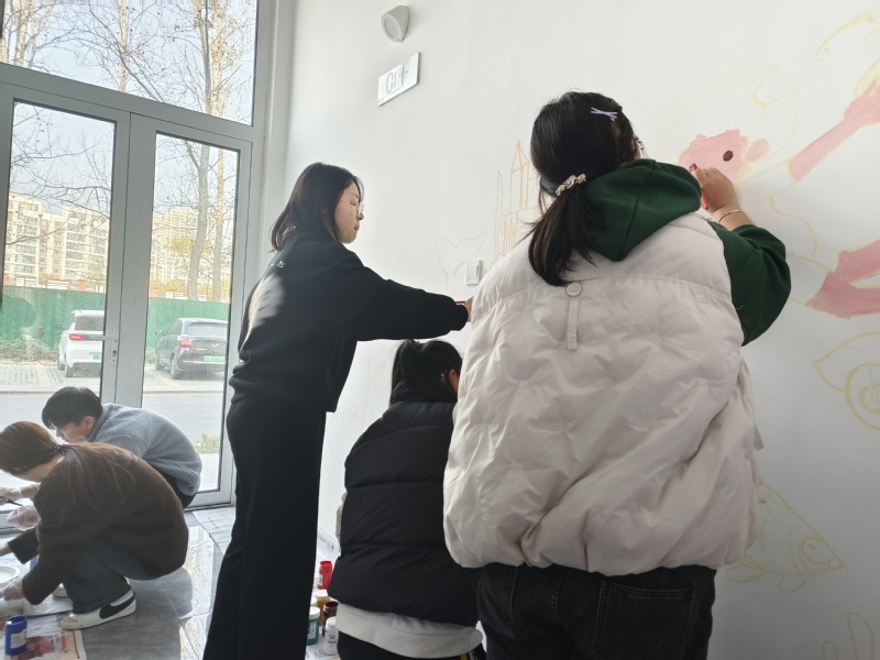 在前期准备工作期间,各团支部分别负责不同墙面区域的设计定稿和材料准备工作,将材料准备和绘制初稿任务落实到每一个同学,保证了每个参与者的活动体验。线条勾勒间,墙面已有几分增色。建筑2101于秀婕表示,“天气很冷,大家如火如荼地开展着工作,虽然我不太擅长手绘,但是大家一起完成定稿呈现的效果也很满意。”在此期间,人人参与,有条不紊,保证高效率地完成了拟定初稿工作,主题鲜明,富有创意,整洁美观。