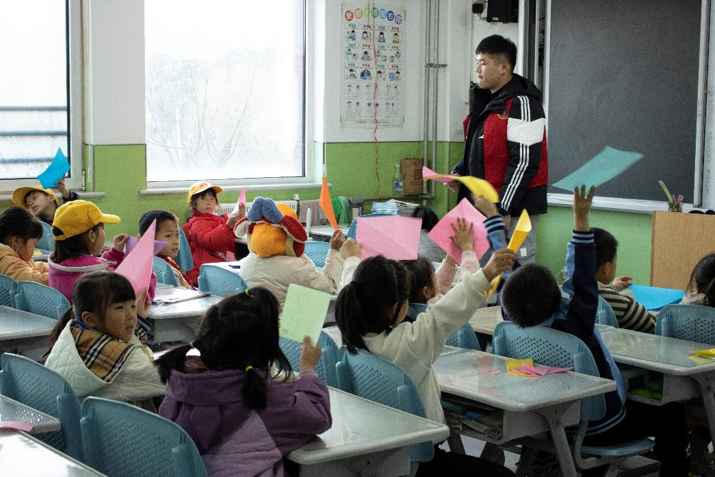 孩子们骄傲地展示目前所做的折纸(申伊楠摄)