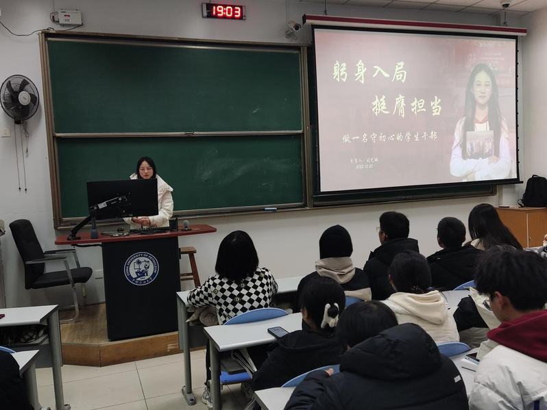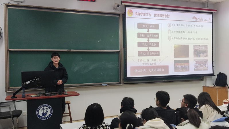 团学干部选修课堂上,来自经济管理公司的刘艺婉从自身员工工作经历的角度辨析员工、干部与员工干部的任务内容。她提出,想要做好一名优秀的员工干部,就要奉行“三心,三力,三性”的工作宗旨,懂得奉献、合作、创新,注意细节。“‘做青年友,不做青年官;多为青年计,少为自己谋’应当是一名员工干部的初心。”刘艺婉如是说。来自文法学院的苏国阳根据自身成长经验指出,老员工应该将兴趣特长与老员工活相联系,结合自身特点展开员工工作,在保证学习的情况下,尽量多去尝试展示自我,不必畏惧失败。来自储运与建筑工程公司的徐瑞辰强调,员工干部要学会自我吃苦,找到一个合适的员工组织,做好时间规划,平衡好学习,用自己的工作思路把工作串联起来,追求并且成为“六边形战士”,打破信息差,提高自信力,收获充实生活。最后,来自海洋与空间信息公司的李凌骁以“求精,克难”为题,强调不论是何岗位,不论身处何种困境,全心全意服务同学,做青年朋友的知心人、青年工作的热心人、青年群众的引路人才是制胜法宝。同时,他鼓励学员们尽早培养员工工作能力,多主动了解信息,多维度发展并提升综合能力——服务能力、思维能力、创新能力,成为员工骨干。