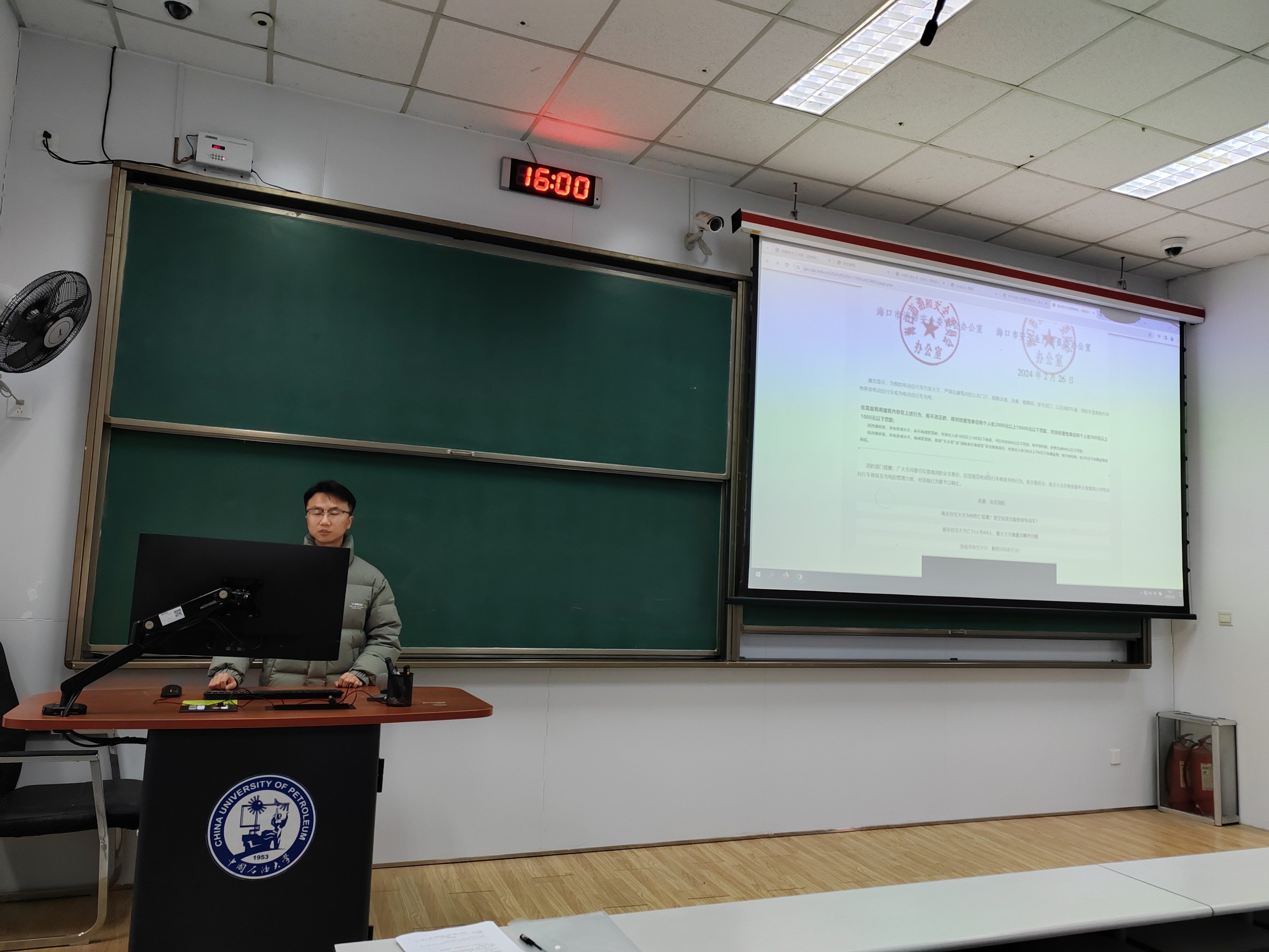 随后,辅导员张钦作电动自行车使用安全补充强调。张钦指出,学校和学院将继续加强对电动自行车使用安全的监管和管理,对于违反规定的行为将严肃处理,不要对违法违纪的行为存侥幸心理。张钦还特别提醒员工,在充电时要去指定的充电场所,选择正规的充电设施,避免使用劣质充电器,以防止火灾等安全事故的发生。