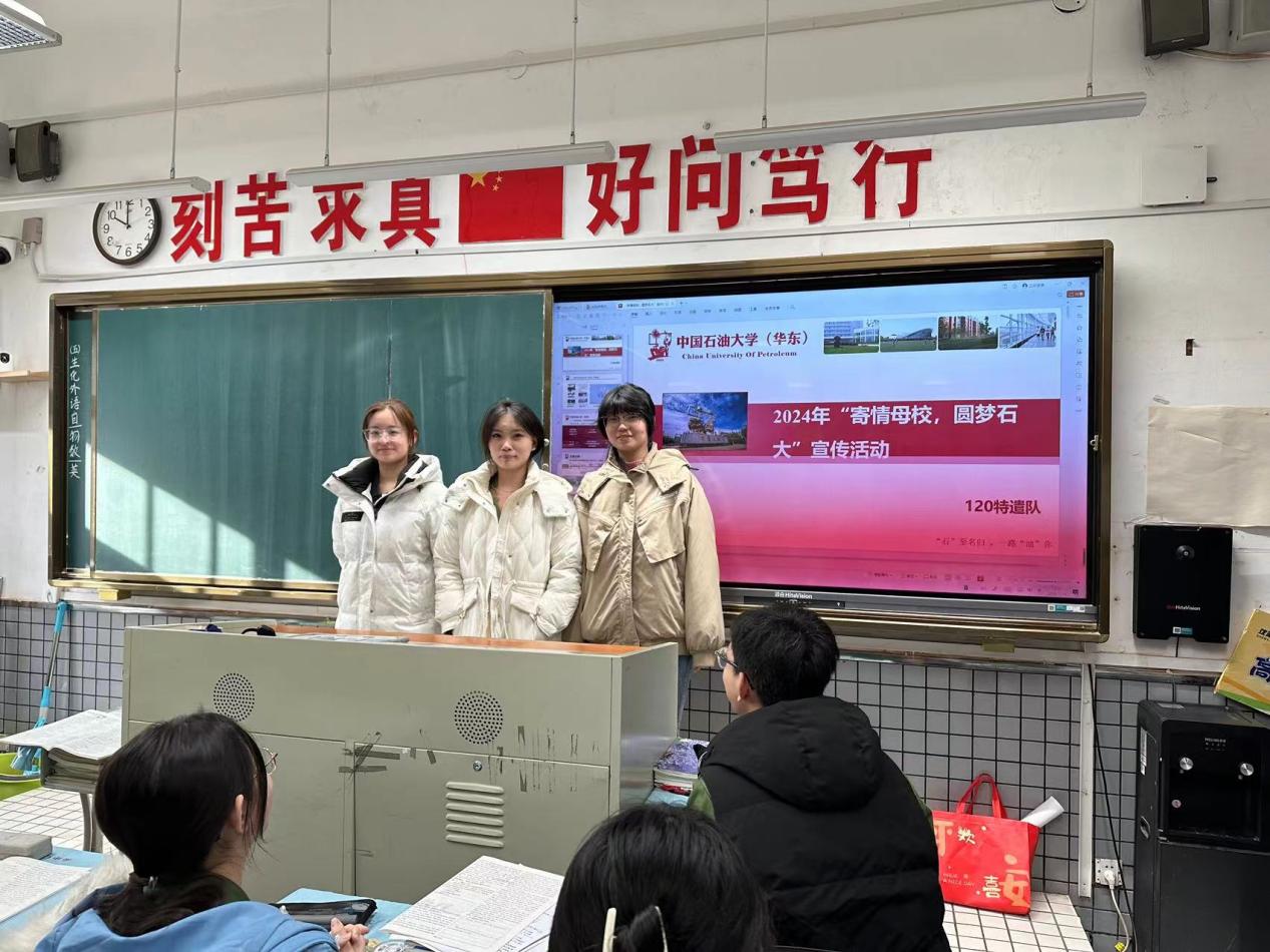 为弘扬石大精神,展现石大的优良传统与石大学子的风采,提升师大的美誉度和影响力,加强与中学之间的合作交流,学院学子积极奔赴母校开展宣讲。“120特遣队”在辽宁省沈阳市第一二〇中学开展以“感恩母校行,追逐石大梦”为主题的宣讲活动;“咸阳实验石大分团”宣讲队前往咸阳市实验中学,在高三五班开展“寄情母校,圆梦石大”主题宣讲活动;深藏不露队”前往河北安国中学开展“来青岛遇见山海,来石大预见未来”主题宣讲活动……