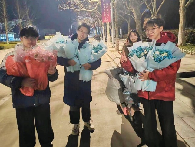3月6日晚,团总支为全年级96名女同学、9名女教师采购了郁金香、蓝玫瑰、康乃馨等鲜花,为第二天的惊喜做好充足准备。