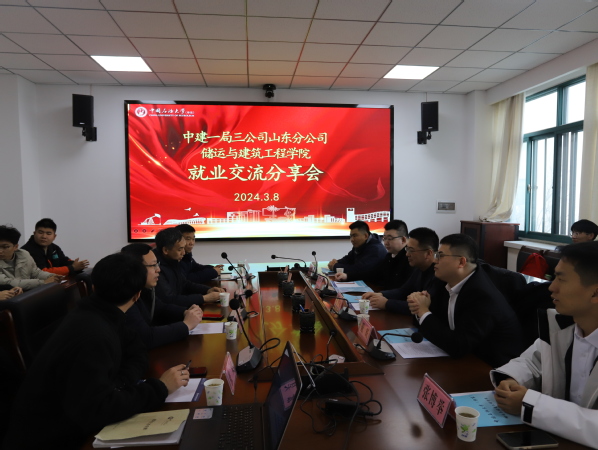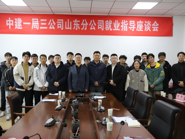 3月8日,中建一局三公司山东分公司党总支专职副书记刘佳龙一行5人应邀到访williamhill威廉希尔官网,开展“中建故事进石大”系列就业分享会,并与学院师生进行座谈交流。员工就业指导中心就业管理部主任杜保亮、williamhill威廉希尔官网辅导员及毕业生代表参加此次活动,交流会由公司党委副书记周辉主持。