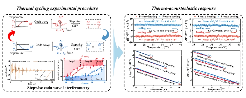 实验结果表明,相同应变下热效应引起的体波波速变化是传统机械应力的19.4倍。采用热滞后曲线的线性回归斜率来计算6061-T6铝的体波热声弹性常数,可以将估计误差控制在3.54%以内,具有极佳的重复性。最后,通过比较热循环实验和声弹性实验获得的TOEC,验证了所提方法的有效性。该研究为材料三阶弹性常数的精确测定提供了新思路,并极大促进了非线性超声检测技术的发展。