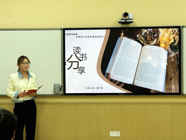 在分享环节,傅润桐等七位汇报人分别分享了《毛泽东评二十四史》等多本书籍,从阅读中畅谈自己的感悟和收获。其中,白轩分享了《红星照耀中国》,他对书中的主要人物所代表的含义进行了剖析,讲述了他从写作背景、典型人物形象中得到的启发。他说:“阅读红色书籍不仅是对个人知识结构的丰富,更是对其思想境界和觉悟的提升,它让我更好地理解和领悟五四精神,激发民族自豪感,积极投身于团学工作中去,做一个对社会和国家有用的人。”周佳瑞总结道:“阅读就像打开了一扇窗,让人们领悟到了新世界,度过了一段新的人生。读万卷书,行万里路,希望同学们将从书中体悟到的五四精神融入到自己的日常生活中去,以实际行动践行爱国主义精神,不断追求进步和发展。”