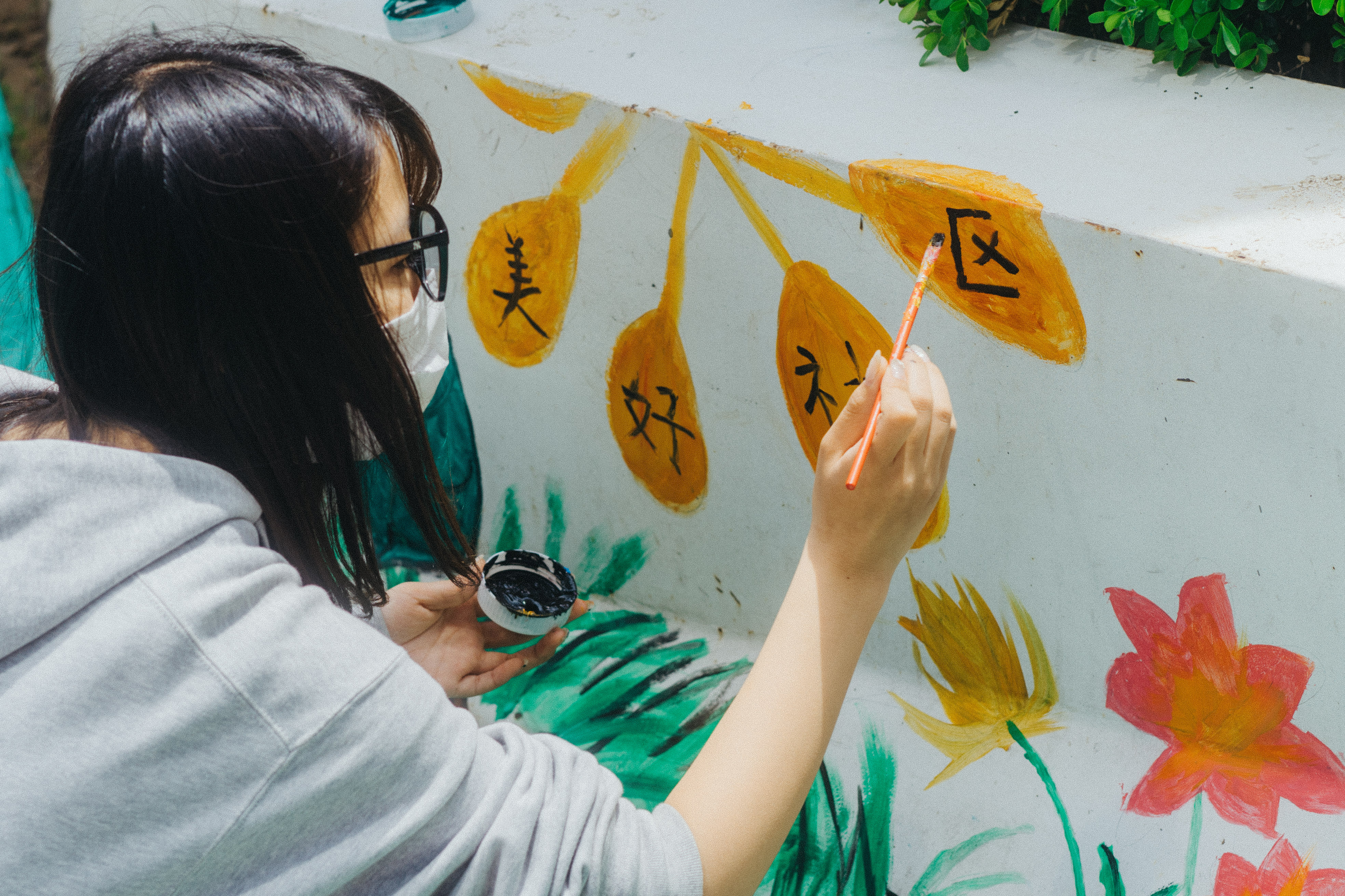 志愿者们与社区工作人员进行深入沟通,了解了社区的环境现状和美化的具体任务,随后志愿者们分组负责设计涂鸦图案、准备绘画工具和材料以及现场秩序维护和居民沟通工作。建筑学专业的志愿者们发挥专业优势,纷纷拿起画笔,开始涂鸦创作。在涂鸦过程中,志愿者们充分发挥想象力和创造力,以墙壁、地面为画布,以色彩为语言,创作出了一幅幅涂鸦作品,这些作品既带有社区文化特色的图案,也带有倡导文明行为、保护环境等的标语或口号,为社区环境的美化增添了一抹亮丽的风景线。部分社区居民前来围观,参与涂鸦的志愿者们深受社区居民的好评。