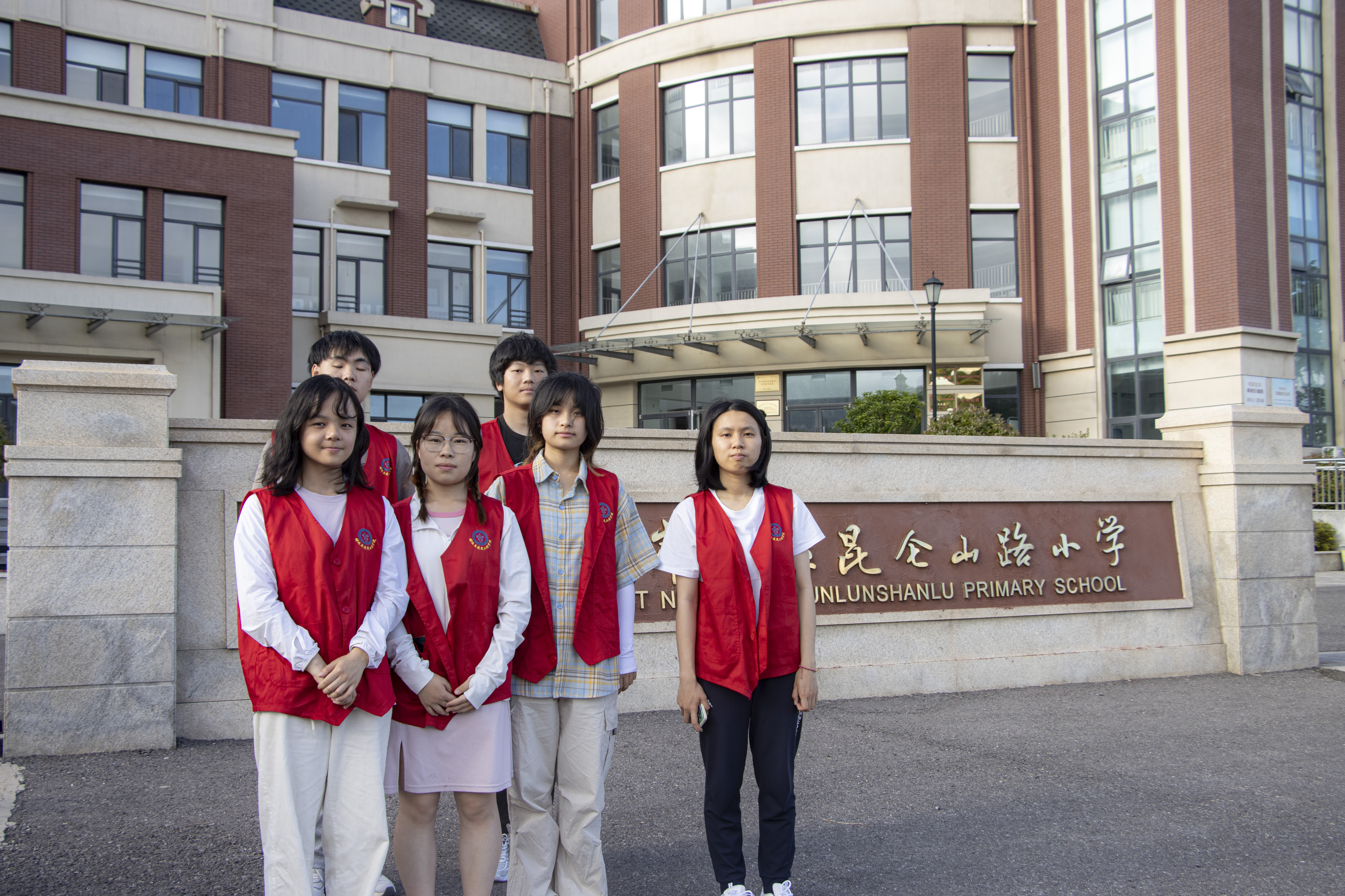 召旭服务队在昆仑山路小学校门前合影 丁晓健摄