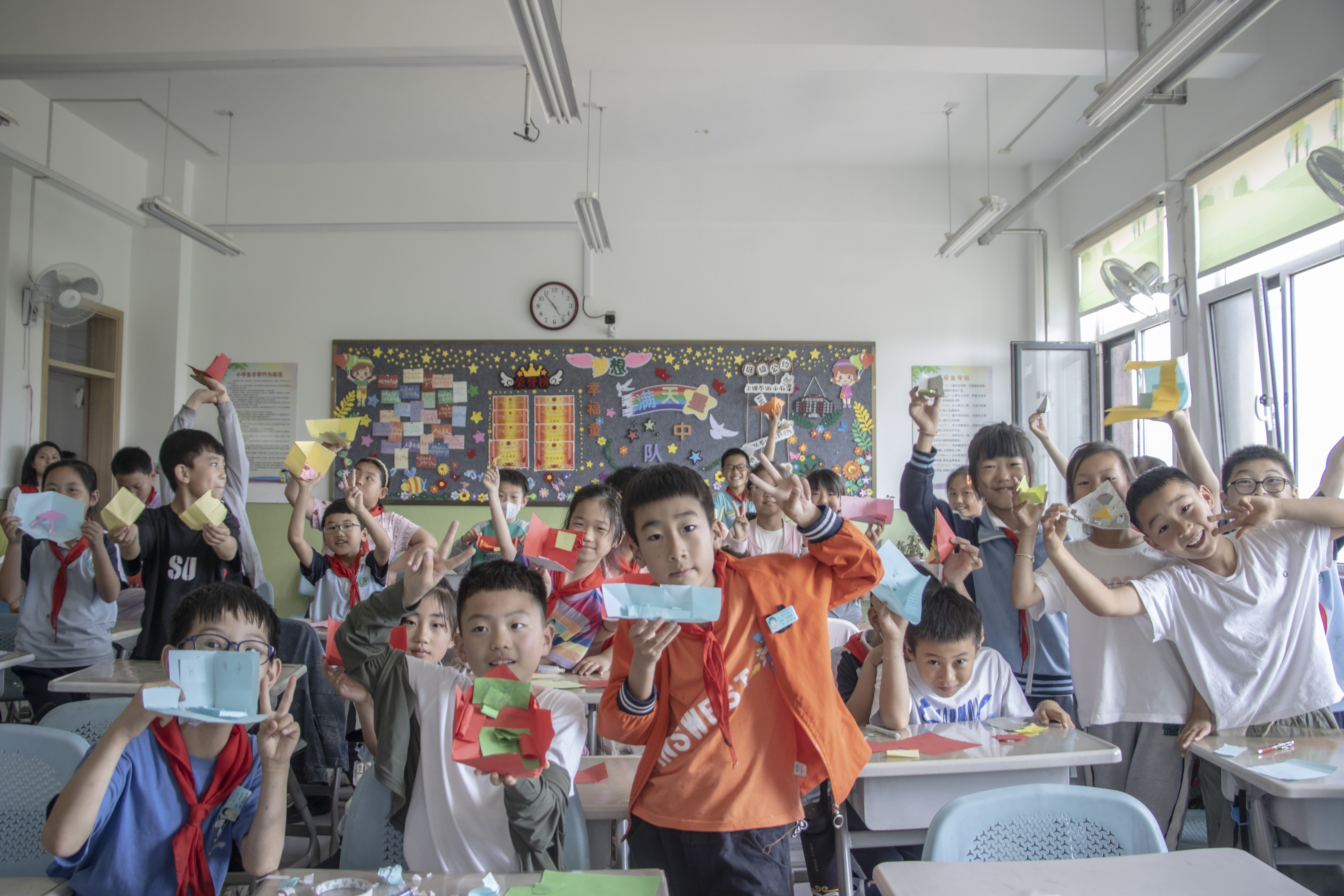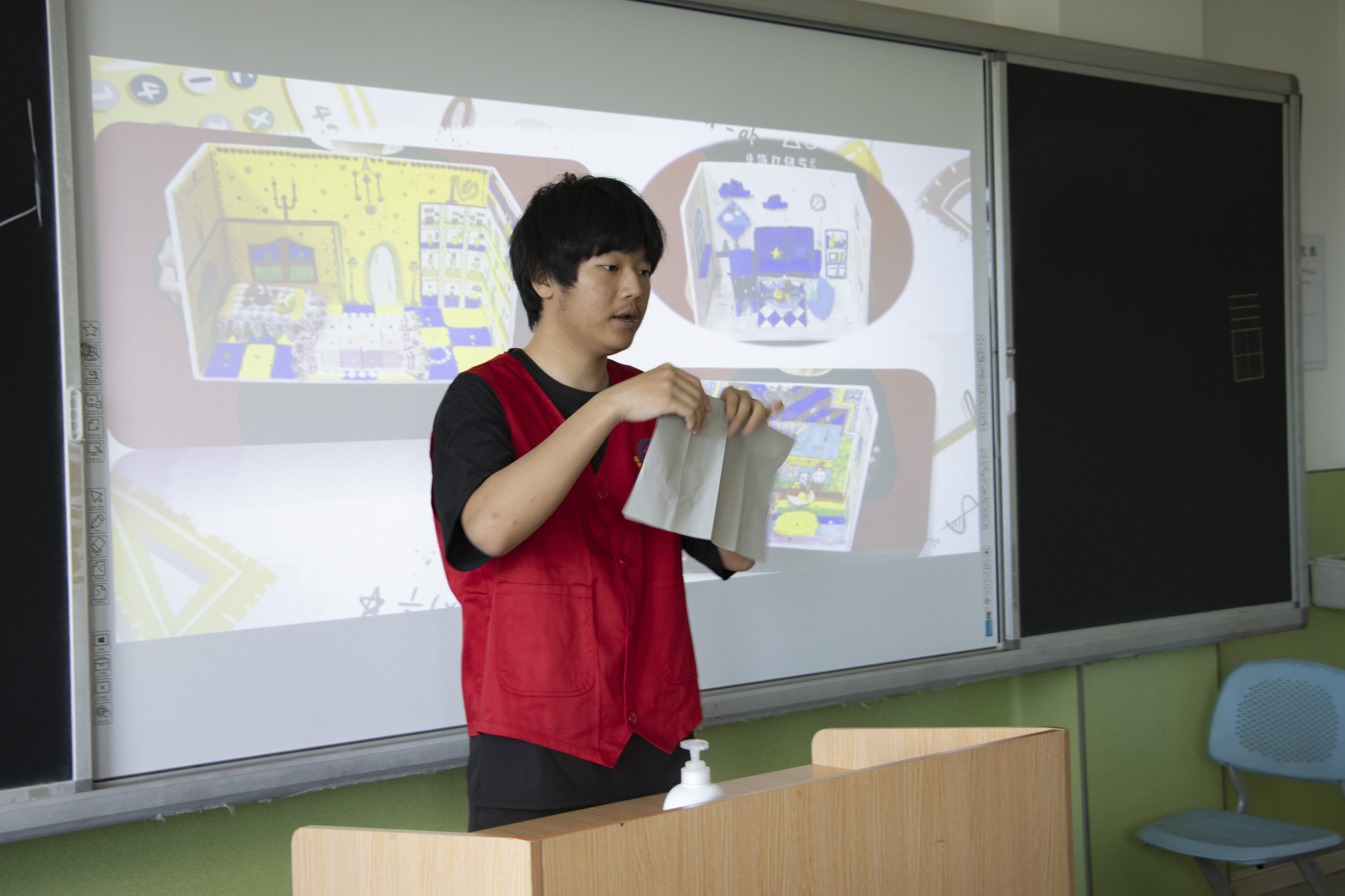 在诗词教学环节结束后,志愿者们和小朋友们一起进行了折纸活动。志愿者们手把手地教小朋友们用纸折出一个“家”。通过折纸,孩子们不仅锻炼了动手能力,还在制作过程中体会到了家的结构和温馨。在活动的最后,小朋友们还一起展示了活动成果,一张张普通的彩纸在孩子们的手中变成了一座座小房子,大家看着自己亲手制作的“家”,脸上洋溢着自豪和喜悦。