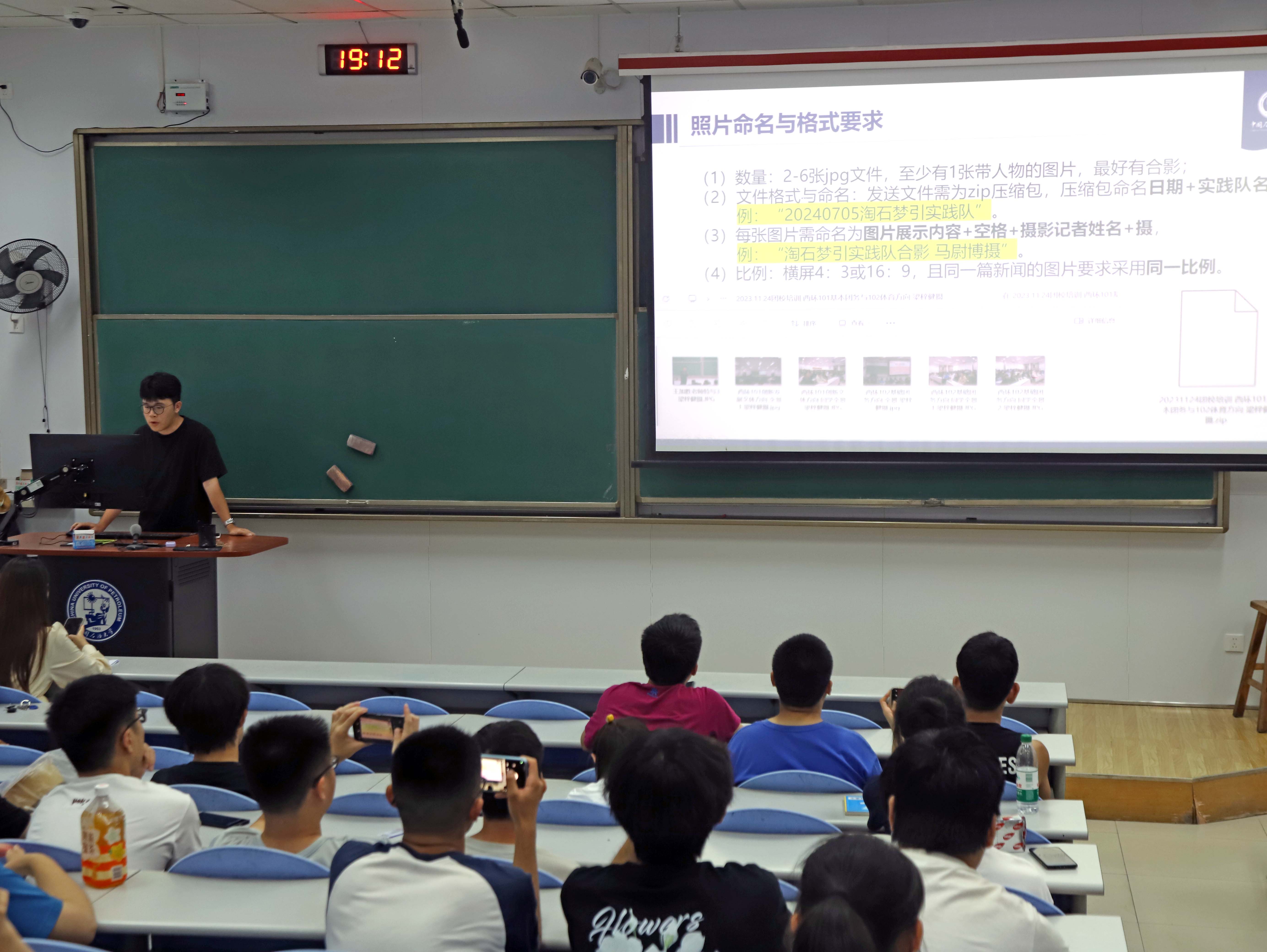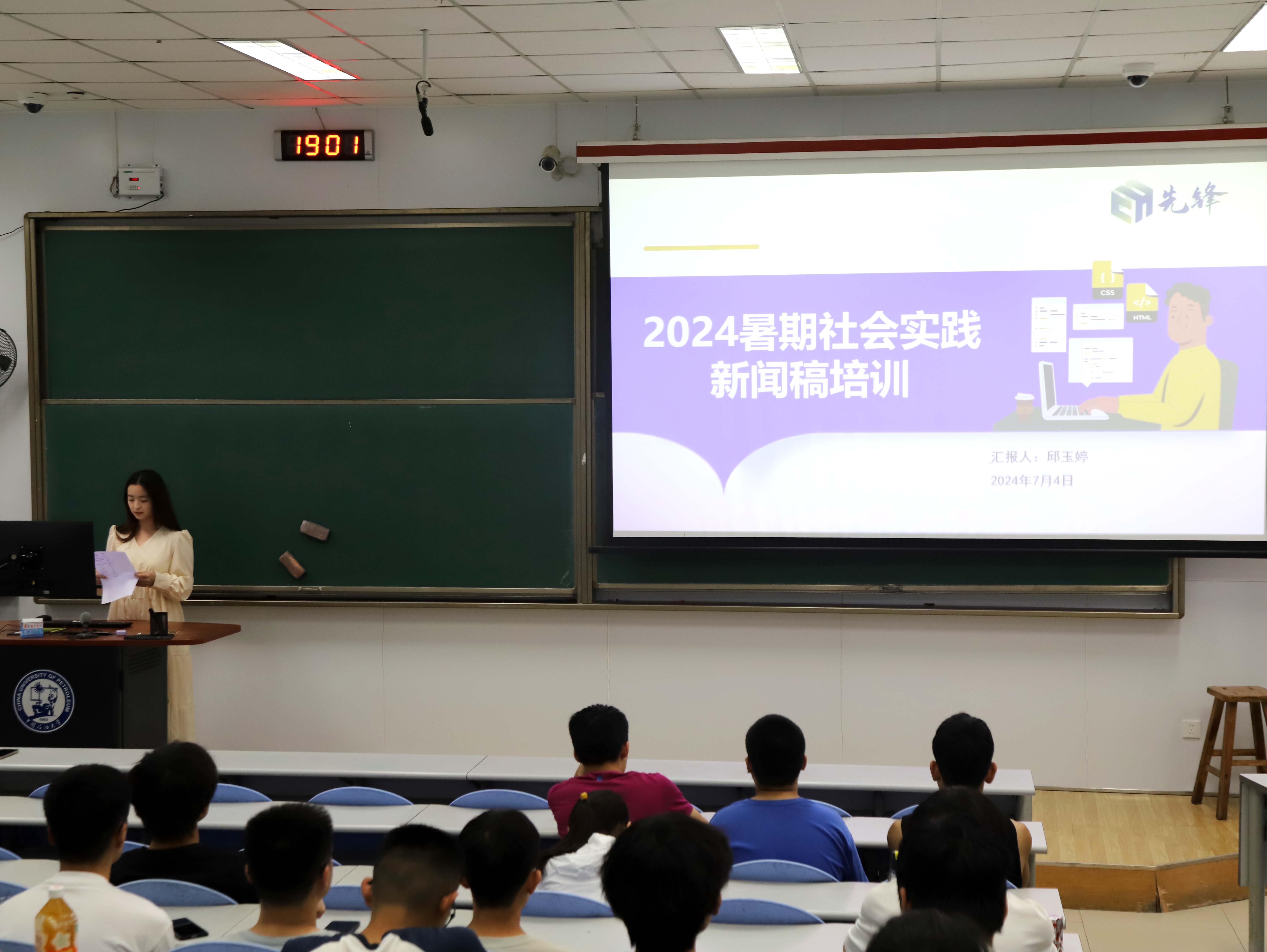 会上,邱玉婷从新闻五要素具体讲述如何撰写一篇合格的新闻稿,介绍新闻写作的格式和规范,强调新闻宣传的注意事项,并列出学院网站的投稿方式,切实提高了各实践队新闻宣传的积极性,为其提供了清晰明确的投稿流程。CHU先锋融媒体中心梁梓健从突出人物主题、构图稳定、画面整洁和后期处理四个方面介绍了社会实践照片的拍摄技巧,同时分享了自身的摄影经验,为各实践队的摄影作品打好基础。牛建林通过实际案例和预设存在安全隐患场景等方式,提醒各实践负责人注意社会实践的安全问题。同时,他从前期准备、出游安全、交通安全、财务安全四个方面进行安全培训,有效地提高了各实践队成员的安全意识,为学院暑假期间社会实践的顺利开展给予保障。