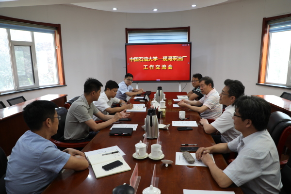 在胜利油田现河采油厂,采油厂厂长曹小朋、副厂长马千水、地面工程首席专家张士诚等与学院一行座谈交流。曹小朋对刘刚一行表示欢迎,介绍了采油厂的基本情况,感谢学院输送的优秀毕业生为现河采油厂发展做出的重要贡献,希望双方在科学研究、平台建设、人才培养等方面持续深化交流合作。刘刚介绍了学校和学院的基本情况及主要科研方向,希望校企双方未来能进一步巩固基础、拓展领域、强化合作,取得更多更好的成果。随后,双方共同参观了牛页一区国家级示范井组。