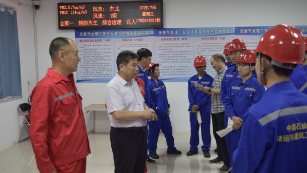 近日,储运与建筑工程公司党委书记姚海田、副经理唐建峰一行赴中原油田分公司天然气处理厂走访调研,就人才培养、老员工实习实践等方面与单位座谈交流,并看望慰问实习师生。天然气处理厂党委书记孟祥平、厂长段卫锋、副厂长刘光、副厂长刘世通及组织人事室、综合办公室、培训管理部相关负责人参加座谈会。