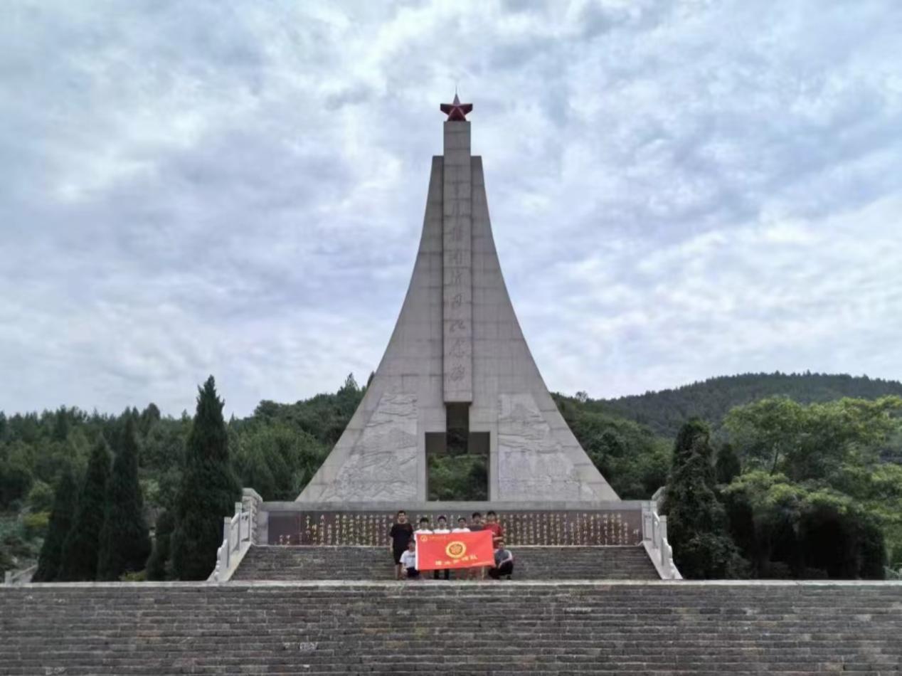 烽火实践队全体成员在八路军抱犊崮抗日纪念园前合影 路人摄