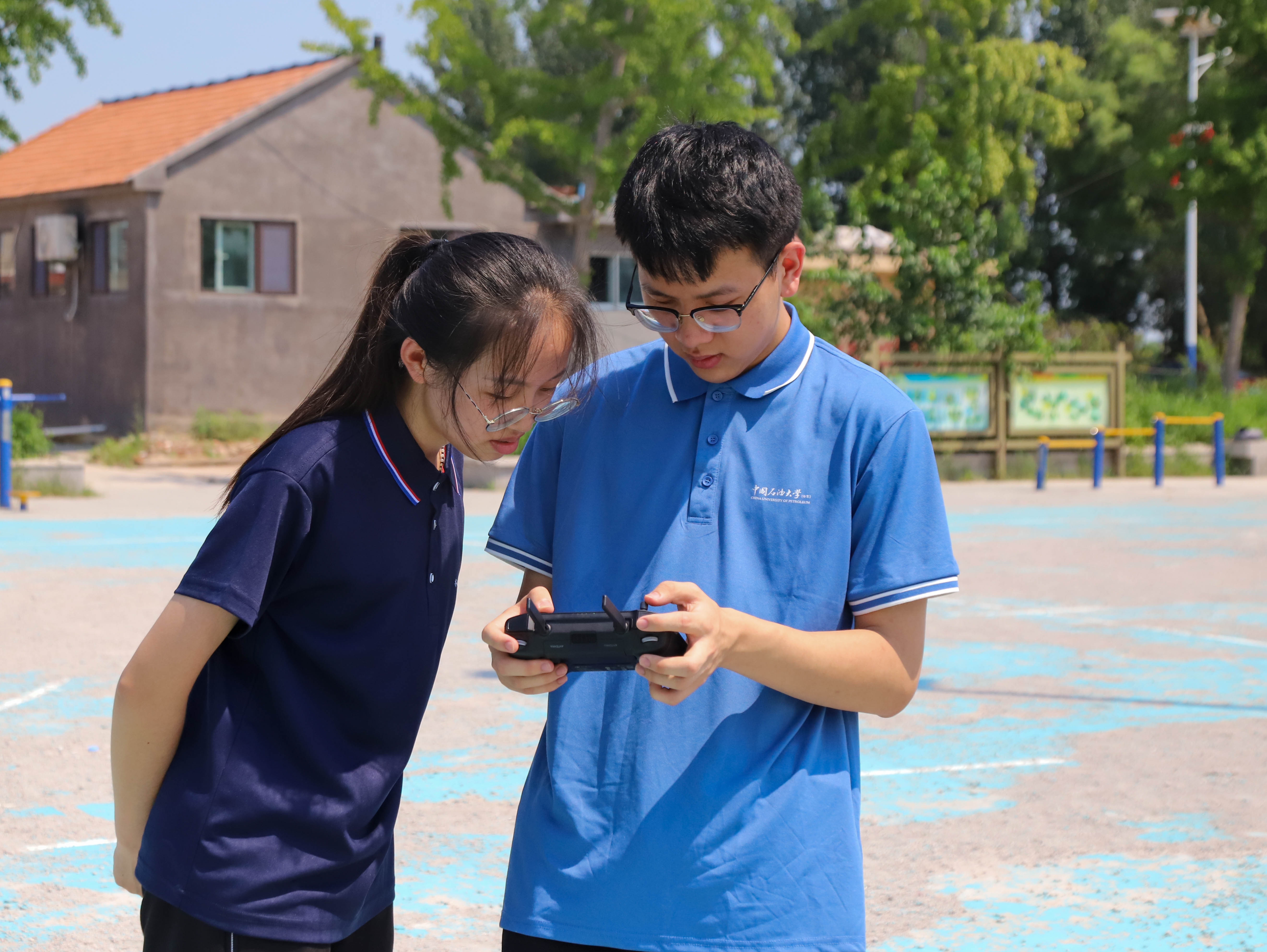 实践队成员调试无人机 段璎航摄