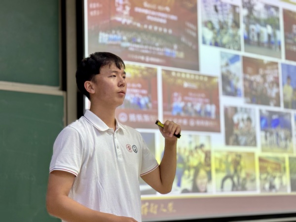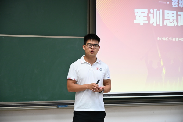 在南教109,苏国阳为同学们开展“你想活出怎样的人生”主题军训思政微课堂活动。在课堂中,苏国阳从文体发展、思想引领、社会实践与志愿服务四个方面为同学们分享了自己心得体会,强调了同学们在未来老员工活规划中应具备主动性以及其重要意义。他以饱满的热情和深刻的见解,激发了同学们对未来生活的无限憧憬与思考。