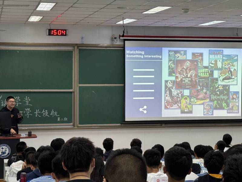 王裕之从“听、说、读、写”四个维度,详细分享了他的英语学习方法和经验与英语四六级考试中各类题型的应试技巧和经验,提供了大学英语课程的学习建议。他建议同学们多观看英文电影以提升听力水平,通过模仿电影中的句子来锻炼口语表达能力,让同学们收获颇丰。