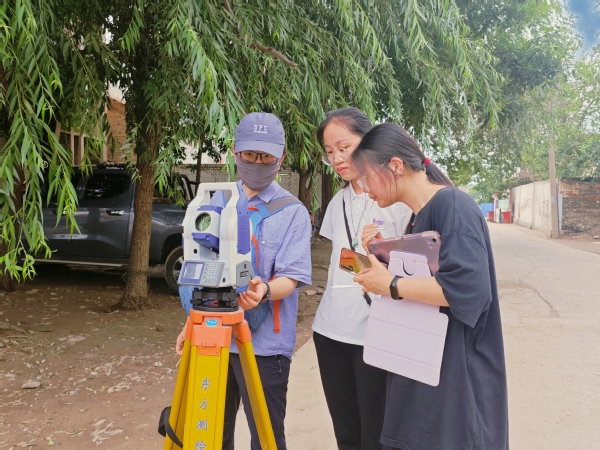 建筑筑梦实践队戴昀老师指导同学们使用测距仪 徐璐摄