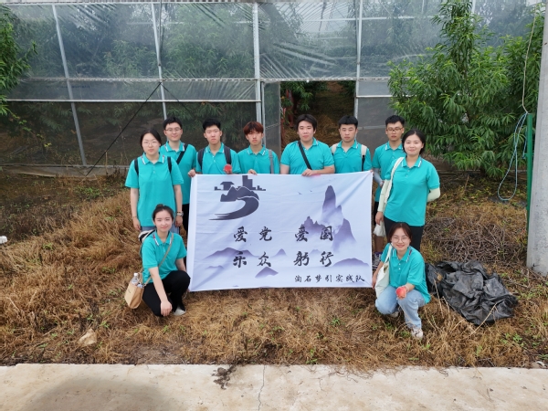 淘石梦引实践队在刘家台村桃园内合影 肖朋磊摄