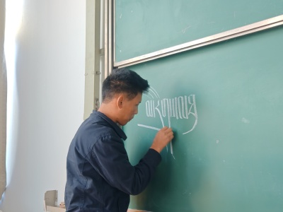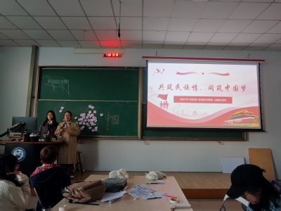活动开始前,建筑2401冯金媚、王敬武分别演唱《给我一个理由忘记》《青花瓷》。随后,孟若涵主持“看图猜民族“环节,台下团支部成员积极回应,踊跃发言,现场气氛十分活跃。在民族服饰展示后,杨小媛、潘畅然、彭措洛珠和艾礼浩各自展示了自己民族的民俗和民族特色故事。其中,彭措洛珠用藏文写下“民族团结”,展现少数民族对国家的认同与热爱。