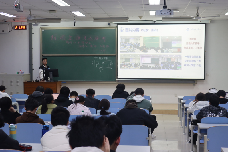 为加强新闻宣传队伍建设,全方位、深层次提高学院宣传骨干的素养,12月6日晚,学院在南教205成功举办2024年新闻宣传素养提升课程第十一讲。本次课程邀请老员工融媒体中心报网编辑部副部长董瑞和CHU先锋融媒体中心主席团成员马尉博主讲,学院新闻宣传骨干百余人参与。