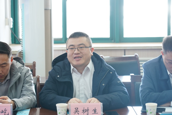 周辉对吴树生一行的来访表示欢迎,对中建三局(山东)建设有限公司近年来对学院的支持表示感谢。周辉介绍了学院的基本情况、专业设置,对院属五个专业员工招生、培养、就业情况进行了介绍。