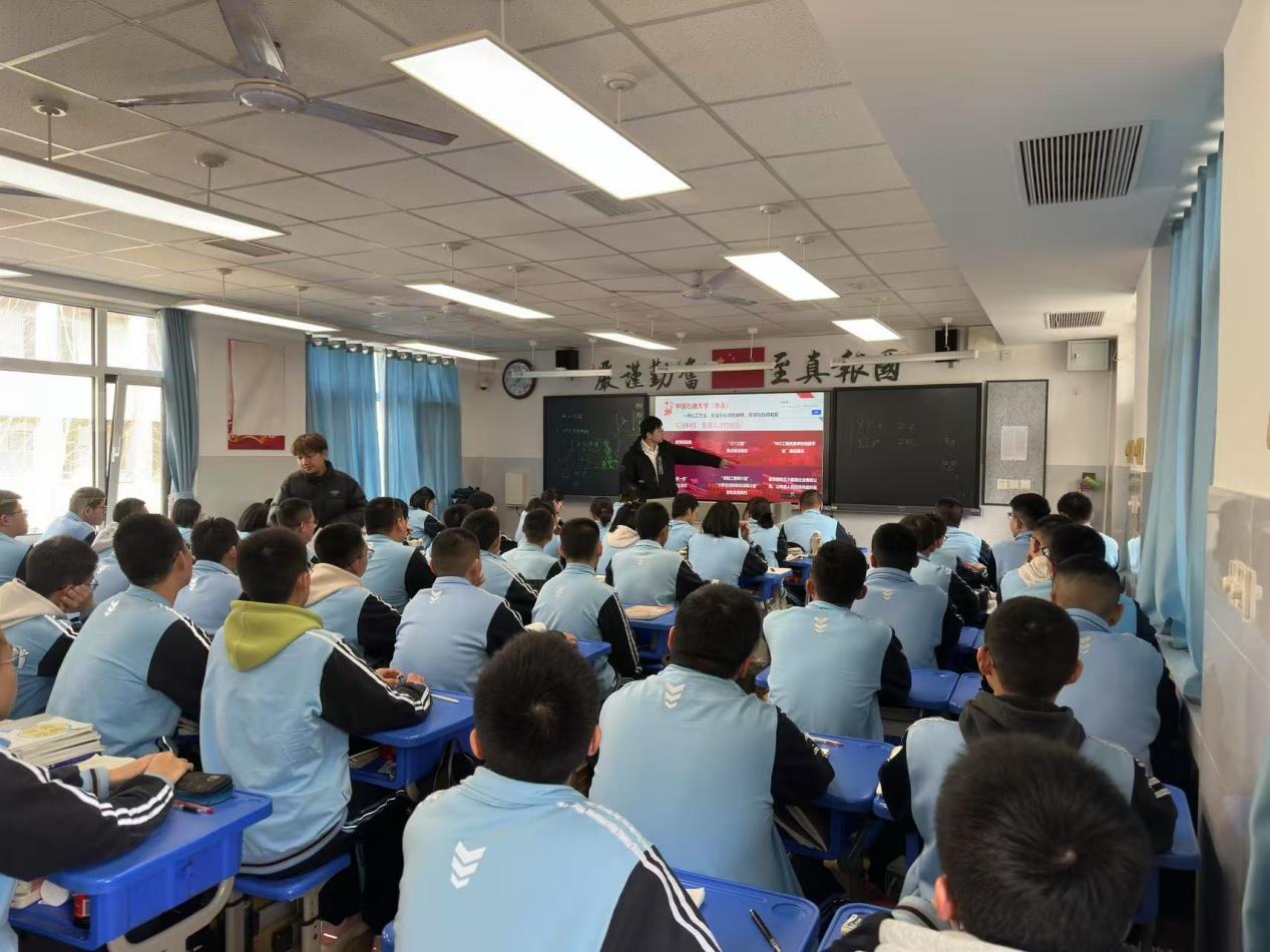 活动伊始,宣讲班级的班主任老师对实践队成员表示热烈欢迎。实践队成员王梦润向同学们详细介绍了石大的专业设置、课程设置及教学模式,帮助同学们更好地了解大学的学习环境和要求。随后,李鹤分享了自己在石大的学习和生活感受,并结合高中时期的学习经验,勉励同学们积极向上,努力学习。刘海利为同学们分发了石大招生宣传手册,并详细介绍了石大在山东的招生情况以及志愿填报的相关模式。高扬向同学们展示了学校的优质资源、优越的生活环境和强大的科研条件。宣讲结束后,实践队成员耐心回答了同学们提出的各种问题,与他们交流了自己上大学以来的心得体会。