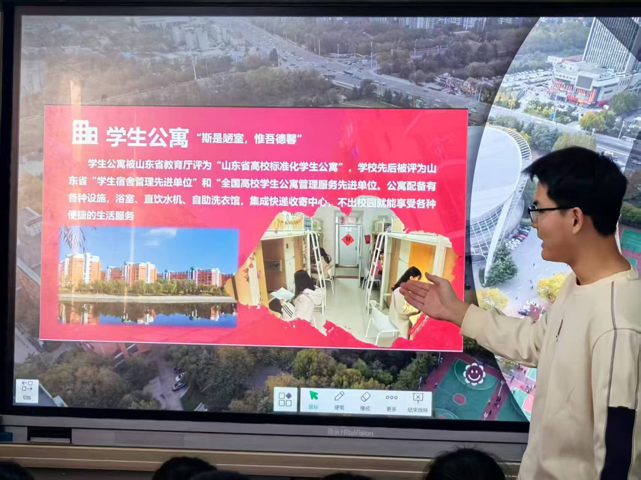 2月16日,成方祎等5名实践团成员走进淄博七中的宣讲现场,采取"专业解码"方式,运用大数据可视化技术展示近五年学校各专业录取位次变化,重点剖析油气储运工程等国家级一流专业的课程图谱与就业矩阵。此外,实践团成员还向同学们系统地介绍了学校的地理位置、生活环境和学科实力,并分享大学学习生活经验。