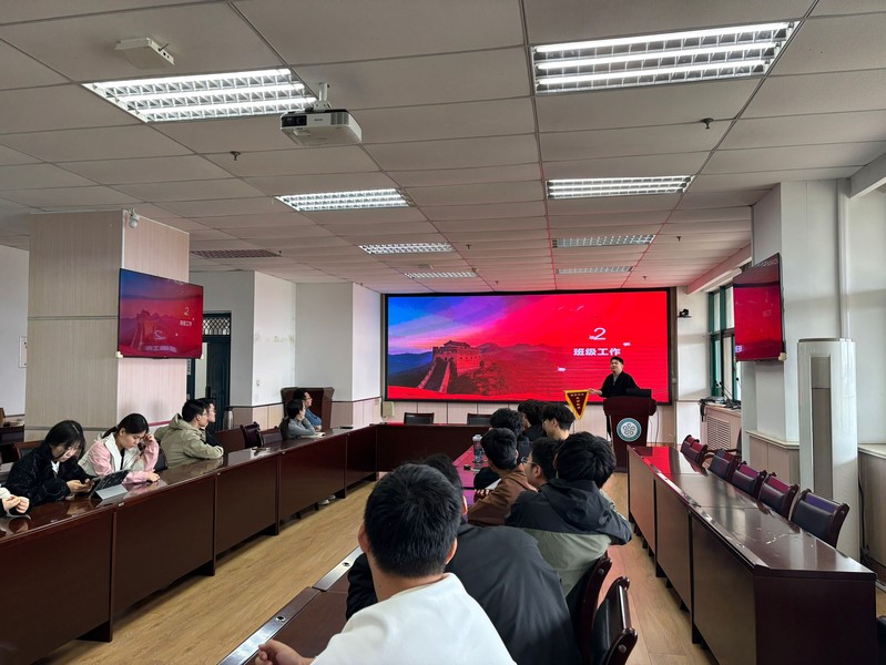 班会伊始,班长丛建栋对班级过去一年的成绩进行了全面总结。在学业方面,班级及格率与优良率显著提升,学分预警人数同比下降近10%,人均欠学分减少1.36学分,展现了同学们在学业上的共同努力。此外,班级在创新创业项目、“互联网+”大赛以及红色精神宣讲活动中表现突出,且被评为“活力团支部”,充分体现了班级的凝聚力与综合实力。