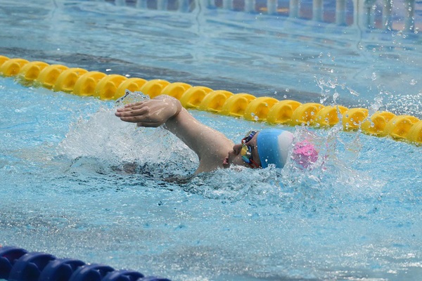 邱玉婷获得甲组女子50米自由泳第八名 李小凯摄
