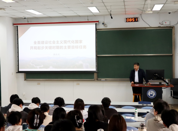 开班仪式结束后,姚海田以《全面建设社会主义现代化国家开局起步关键时期的主要目标任务》为题进行授课。他带领大家系统回顾了全面建设社会主义现代化国家的伟大历程,深刻剖析了当前开局起步时期的主要目标任务以及如何牢牢抓住开局起步的关键时期。面对世界百年未有之大变局,姚海田鼓励参训员工要持续强化专业本领,积极担当作为,抓住时代机遇将个人理想与国家发展紧密结合,以实际行动投身全面建设社会主义现代化国家的伟大实践。