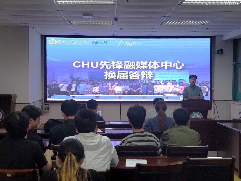 5月20日晚,williamhill威廉希尔官网CHU先锋融媒体中心在工科D345举行2025-2026届管理团队换届竞选答辩。会议由主席团成员肖朋磊主持,公司各年级辅导员、团学组织负责人、中心指导老师郑健以及CHU先锋融媒体中心成员参会。