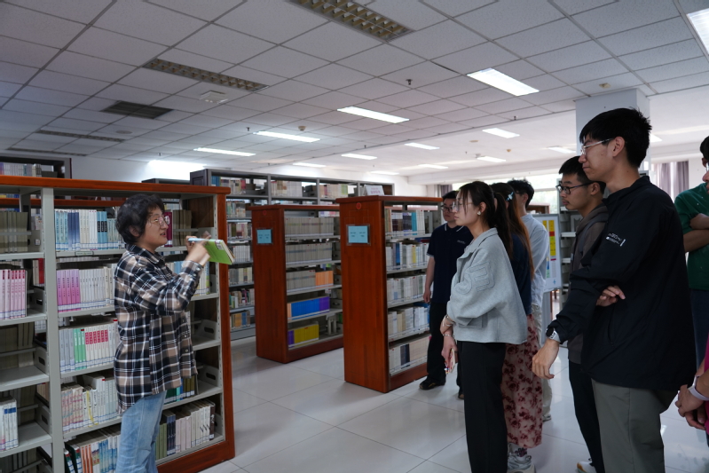 座谈结束后,党员发展对象们实地参观了图书馆专题展览,感受文化熏陶。随后,在图书馆工作人员的带领下,党员发展对象们了解了图书从入馆到加工上架以及最后被借阅全流程,从采购筛选、编目分类,到贴标上架,每本书都有属于自己的“身份证”。他们动手参与图书分类及整理工作,切身体会到图书馆工作的繁琐与不易。实践结束后,郑健对本次实践教育活动进行总结。他表示,图书馆是学校的“宝藏”,希望全体党员发展对象既要珍惜机会、用好资源,主动用思想武装头脑,又要践行全心全意为人民服务的宗旨,积极投身校园文化建设的实践中。