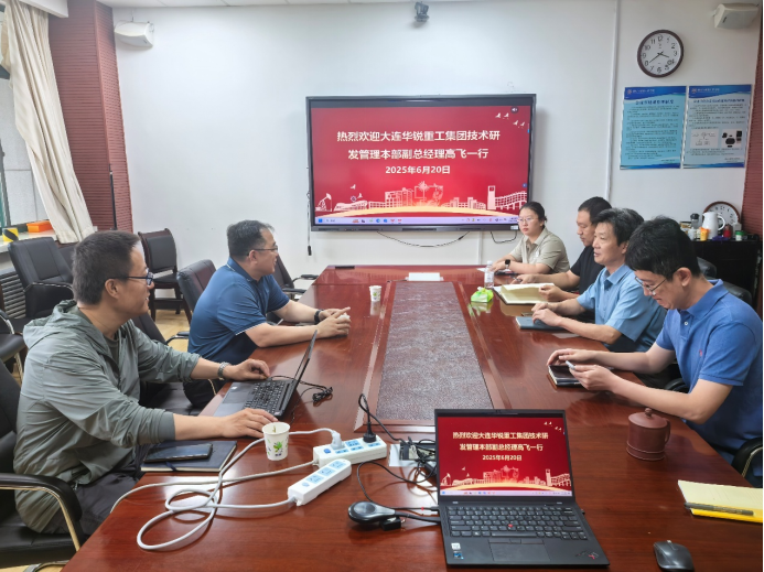 程旭东对高飞一行的来访表示欢迎,介绍了学校及学院的基本情况、主要科研方向及科研成果,希望双方以此次交流为契机,立足行业,谋划长远,共同探索校企合作新模式,实现校企双方优势互补与资源共享。高飞从技术创新体系、研发成果概况、产学研用开放合作及未来合作发展方向等几个维度介绍了大连华锐重工集团的基本情况,期待未来双方有更深入的合作交流。随后,参会双方就未来研究方向细节进行了深入探讨。