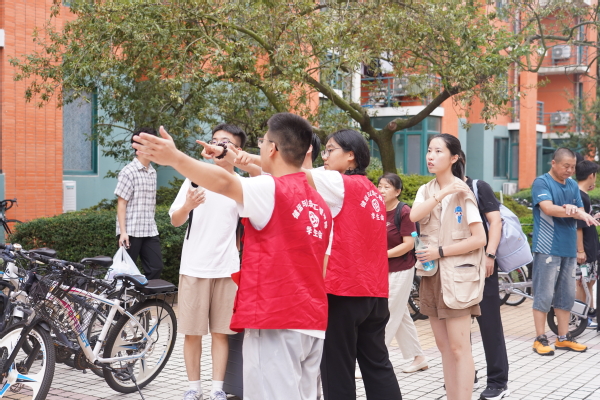 志愿者引导新生及家长入住宿舍 王瑞聪摄
