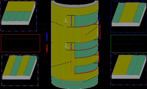 鳞片式吸力基础的仿生灵感启发于蛇类爬行动物前进时阻力减小,后退时阻力增大的原理。在吸力基础的外侧壁采用了仿生蛇腹鳞片结构(简化为蛇腹皮肤层与鳞片所形成的三角区域)。在前期研究中已充分论证鳞片式吸力基础具备降低土塞高度,降低沉贯阻力,消除灌浆工艺及提升服役承载力的效果。寻求最优仿生鳞片桶壁布置方式及揭示沉贯机理是推动鳞片式吸力基础应用的前提。
