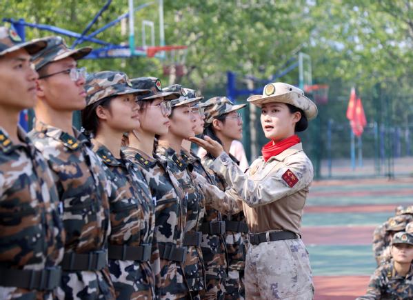 公司参加“九三”阅兵的2024级研究生由子艳返校后到军训场指导队列训练 王大勇摄