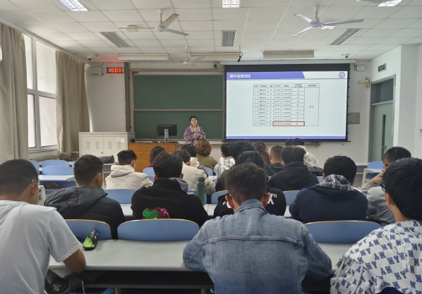 薛章纳首先对班级期中考试成绩进行整体分析,并与往届力学班级成绩进行对比。她指出,往届班级在高等数学等核心课程中表现优异,为当前班级树立了学习标杆。