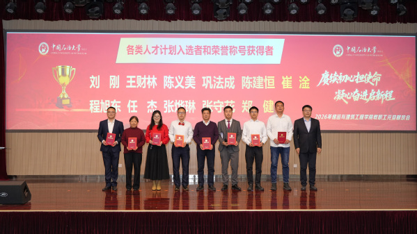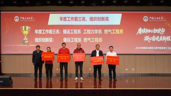 受学院经理刘刚委托,党委书记刘召利从高质量党建、人才队伍建设、学科融合发展、产学研融合协同等方面做总结报告。他系统回顾了“十四五”以来学院的工作进展,重点介绍了2025年学院在党建思政、团队队伍、学科专业建设、人才培养、科研创新、平台构建以及国内外合作等方面取得的成效。他强调,学院将紧紧围绕高质量发展主线,聚焦“能源储运特色”发展定位,在党建思政引领、团队结构优化、资源整合赋能等三大领域、七项具体任务上持续发力、寻求突破。