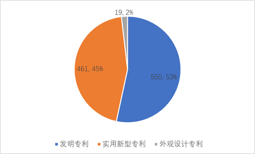 公司2018年1-12月份共授权职务专利1030件,12月新增77件。其中,发明专利550件,实用新型专利461件,外观设计专利19件(图1),12月新增发明专利29件、实用新型专利47件,外观设计专利1项。